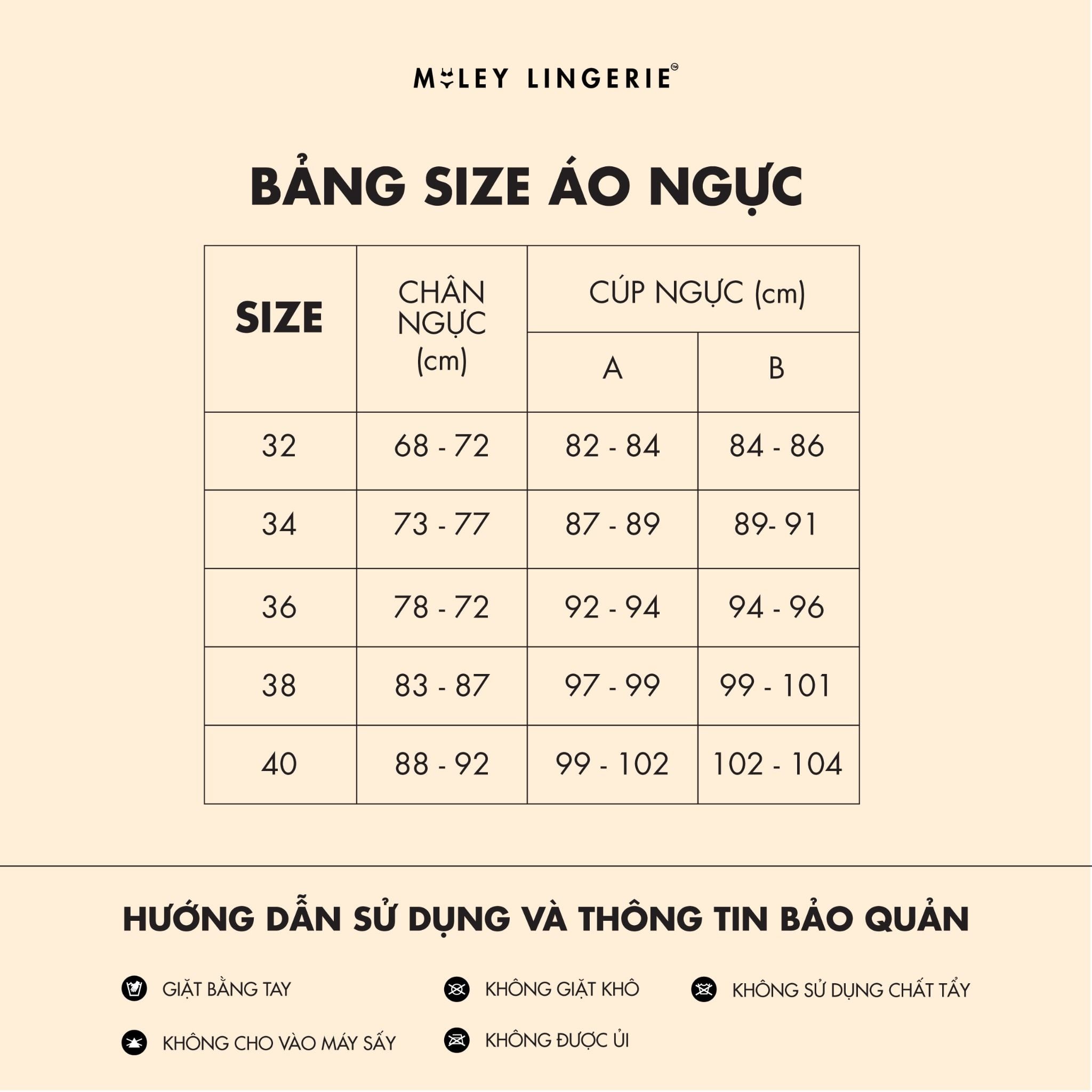 - Áp dụng đổi trả 1 lần duy nhất cho các ĐH áo ngực. Nếu Qúy KH không chắc chắn về size, Miley Lingerie khuyến khích KH nhắn tin để được tư vấn, tránh trường hợp đổi trả không mong muốn.